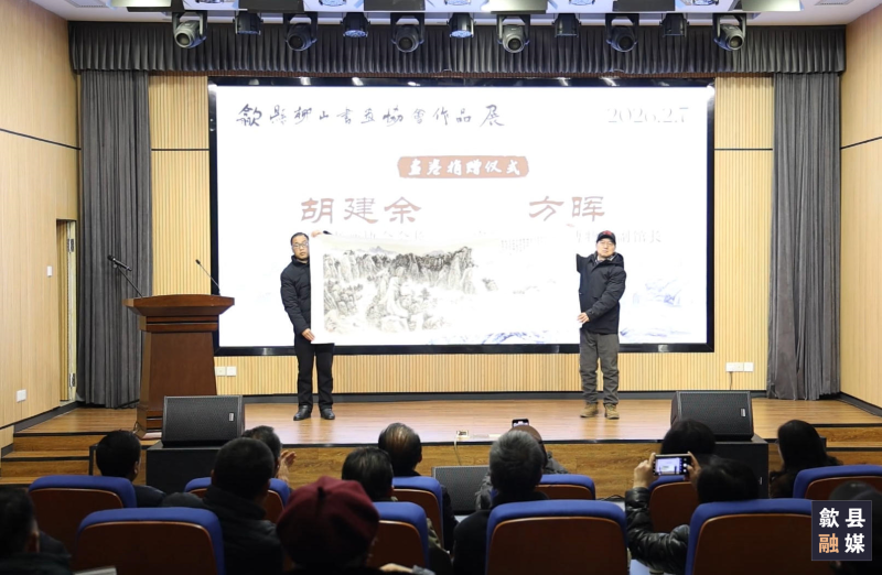歙县作为徽州文化的核心地,深厚的文化底蕴为书画创作赋予了灵魂,成为本土书画创作者取之不尽、用之不竭的艺术源泉。此次“貌写家山”作品展从2月7日持续至3月6日,共展出九十多幅书画作品,涵盖书法、绘画等多种形式,风格迥异、各有千秋,全方位展现协会会员们扎根乡土、潜心创作的成果。当天,还举行了画作捐赠仪式,丰富了安徽徽州历史博物馆馆藏。