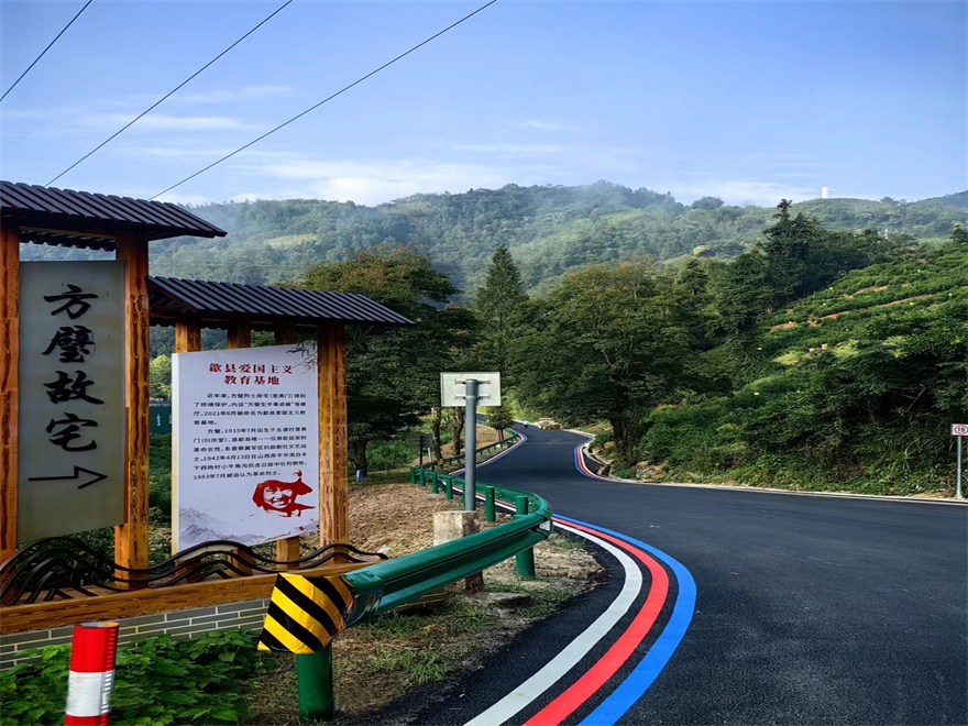 彩色公路的建设不仅提升了路面“颜值”,而且以路为线,串联起了五渡方璧故宅、红色大讲堂、红色主题公园等沿线红色旅游景点。沿着公路行驶,既能欣赏沿途的自然风光,又能感受五渡村的红色历史氛围和深厚的人文底蕴。“这条彩色公路为村民们带来便捷交通的同时,也为我们五渡旅游增添了一条红色新动脉。”五渡村党支部书记方曜说道。