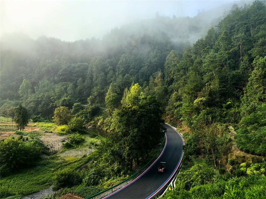 近日,摄影师用镜头记录下歙县X003县道北岸镇五渡村一路段风景:平整的黑色路面,颜色靓丽的标线,映衬着两侧秀丽的青山,白墙黛瓦的村落,构成一幅宁静优美的画面。