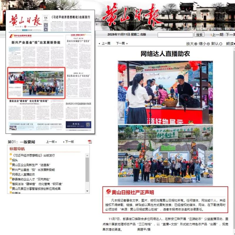 地处新安江山水画廊核心区的街口镇,柑橘种植历史悠久。然而,“酒香也怕巷子深”,面对“丰产难丰收”的困局,当地政府积极搭建立体销售网络,联合本土网络达人,将直播间搬到了江畔果园。主播们不仅细致讲解柑橘的品质特点,还穿插展示了新安江的如画风光和徽派古村的粉墙黛瓦。观众在直播间既能下单品尝这份“新安江的甜蜜”,又能跟随镜头“云游”水墨丹青般的山水画廊。南京网友的一句“原来柑橘长在这么美的地方”引发5箱订单,更点燃了这场“云端助农”的热潮。