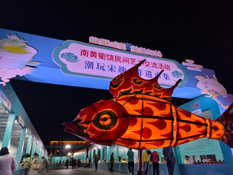 11月14日,由福建省南平市、安徽省黄山市、浙江省衢州市、江西省上饶市四省四市人民政府联合主办的“缘聚武夷 美美与共”南黄衢饶民间艺术交流活动在福建南平大剧院隆重举行。在这场跨区域、高规格的文化盛宴中,汪满田鱼灯受邀参展,活动期间亮相“潮玩宋趣”非遗市集。