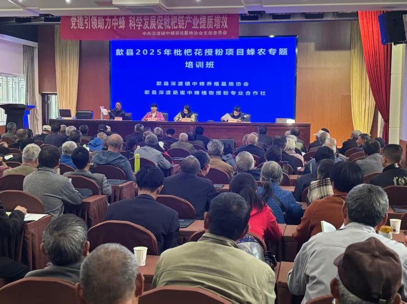 为提升中蜂养殖技术水平,促进枇杷与中蜂产业协同发展,深渡镇中蜂养殖基地协会在大茂社区举办了为期两天的中蜂枇杷花授粉项目培训。培训紧扣产业实际需求,针对性设置蜂农防盗知识、授粉中蜂群繁育技术、成熟蜜生产技术等实用课程,吸引200多名蜂农积极参与。