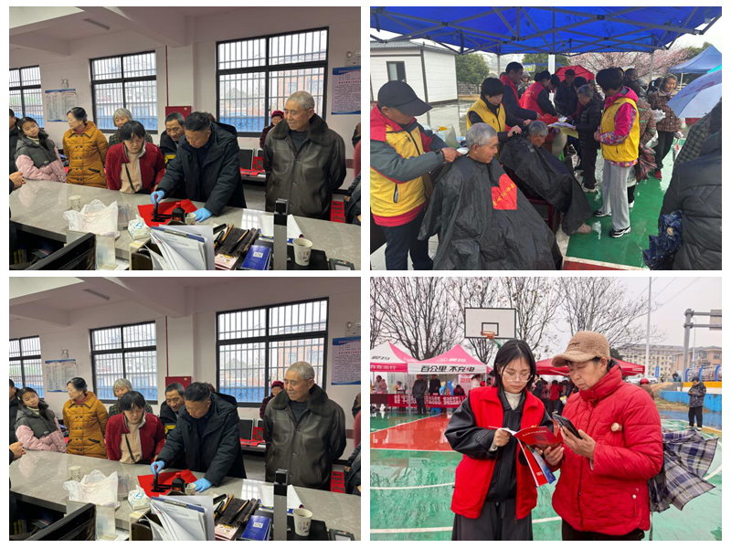 此次集中示范活动以贴近农村实际、满足群众需求为导向,搭建起一站式综合服务平台。活动现场,文艺工作者带来的精彩演出博得阵阵掌声,在政策咨询区,农业技术员耐心解答种植养殖难题,司法工作者普及法律常识,就业服务人员介绍最新就业政策,让村民在家门口就能享受到专业指导。健康服务区尤为热闹,医护人员认真为村民量血压、测血糖,提供健康咨询;爱心义剪摊位前,志愿者娴熟的技术和热情的服务赢得了老人们的连连称赞。为应对天气变化,桂林镇提前做好预案,将写春联等室内服务项目妥善安排至桂林村委会室内进行。书法家们泼墨挥毫,一幅幅寓意吉祥的春联在笔墨流转间传递着新春祝福,吸引了众多村民前来领取。
