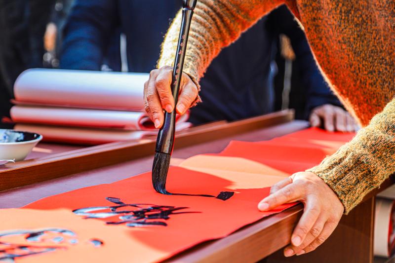 走进现场,“翰墨迎春”区人气尤旺。长桌整齐排列,红纸铺展,墨香沁人。本地书法爱好者们凝神运笔,挥毫之间,苍劲的“福”字与寓意吉祥的春联跃然纸上。村民们围拢挑选,不时交流赞赏。“还是手写的春联有灵气,看着就喜庆!”一位手捧墨宝的大爷笑容满面。笔墨传递祝福,也让传统年俗更显真切温暖。
