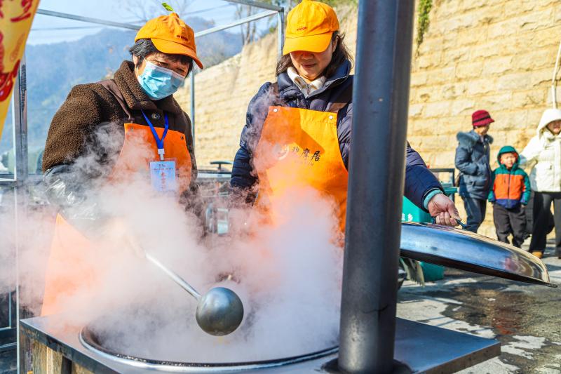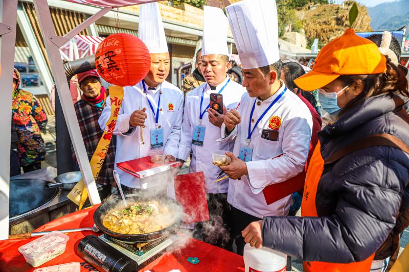 不远处,“美食飘香”区热气蒸腾。灶火跃动,锅铲翻飞,红烧胖头鱼的浓香与徽州毛豆腐的特有风味交织扑鼻。当地厨师以地道食材与匠心做法,唤醒记忆中的年味。乡亲们一边品尝,一边切磋厨艺,此处不仅是味蕾的盛宴,也成为传承美食文化与浓厚乡情的生动课堂。