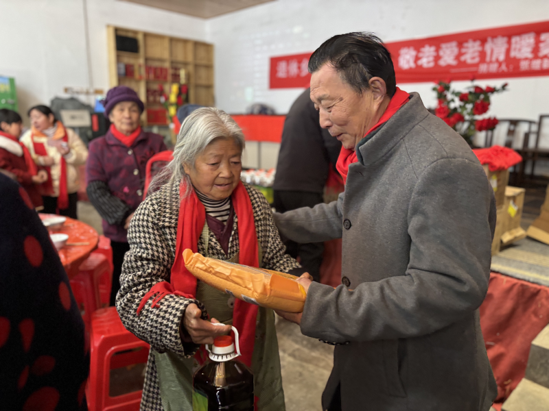 2月9日,歙县岔口镇金前村暖意融融。退休老人张继群心系故土,自费为村里80周岁以上的40位老人举办了一场温馨的“长寿面宴”,并现场发放了米、油等生活物资,用最朴素的方式传递着尊老敬老的传统美德。