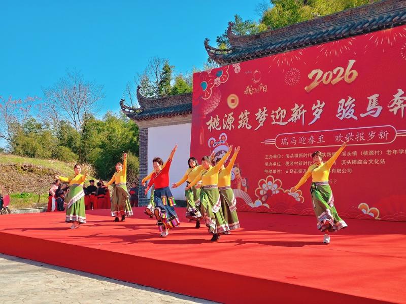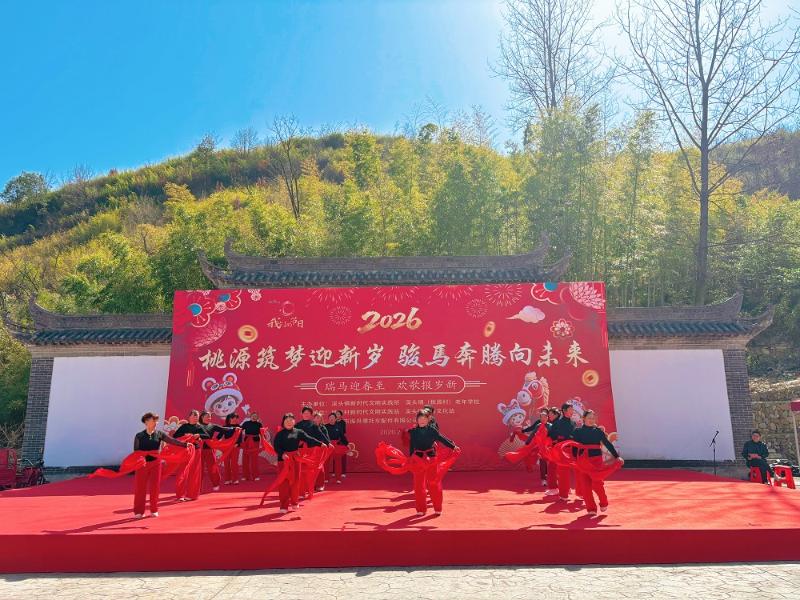 2026年2月20日至21日,农历的大年初四与初五,歙县溪头镇桃源村文化广场张灯结彩、欢声雷动,以“桃源筑梦迎新岁·骏马奔腾向未来”为主题的第二届春节联欢会连续两天精彩上演。这场由村民自导自演、全员参与的乡村文化盛宴,吸引了千余名村民及周边游客到场观看,点燃了桃源村的年味与热情。