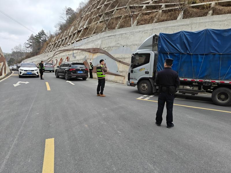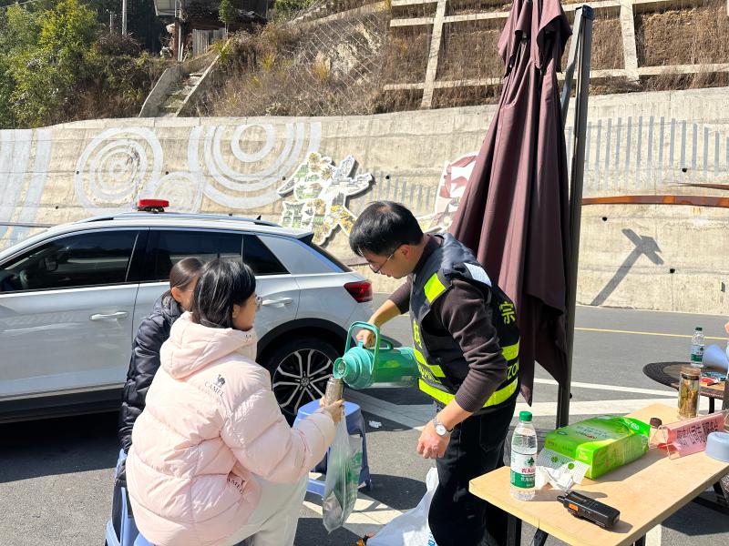 阳产佛岭头路段作为前往阳产土楼的必经之路,弯多坡陡,交通压力巨大。春节期间,这里每天都能看到志愿者和民警并肩值守的身影。“师傅,这里实行临时交通管制,请您将车辆停至游客中心停车场,换乘接驳车上山。”“大家有序排队,注意避让行人。”志愿者们身着反光背心,手持对讲机,在车流中穿梭忙碌,配合民警开展交通疏导、车辆分流、路线指引等工作。面对返乡车流与旅游车流叠加的情况,他们坚守岗位,从清晨到日暮,一遍遍重复着引导话语,一次次化解交通拥堵,用坚守保障了阳产佛岭头路段的交通畅通,为游客铺就了平安出行路。