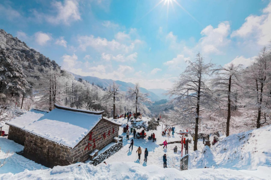 以文塑旅,以旅兴农,箬岭村大力推进文旅深度融合。依托古道资源,发展民宿、农家乐近10家,推出特色餐饮、农事体验等业态,让村民在家门口吃上“旅游饭”。做强生态产业,发展黄山毛峰、歙州红茶、金丝皇菊等特色种植,以“生态+文旅”模式,将资源优势转化为经济优势。通过举办古道徒步、文化探访等活动,融入区域旅游线路,年接待游客量稳步增长,带动农特产品热销,村集体经济与村民收入实现双提升。箬岭山庄等经营主体的经营数据显示,古道徒步游客络绎不绝。据统计,仅雪景旺季期间,日均专程奔赴箬岭的游客就超千人。