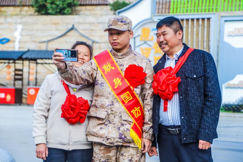 “到部队后,我们一定不怕吃苦、不怕磨炼,争取早日立功,绝不辜负家乡人民的期望!”新兵代表余俊质朴而铿锵有力的发言,道出了三名青年的共同心声。亲属们眼中虽有不舍,但更多的是欣慰与自豪。前来送行的队伍中,既有白发苍苍的长者,也有年幼的孩童,大家纷纷拿出手机记录下这光荣时刻,现场洋溢着浓浓的爱国情和鱼水深情。