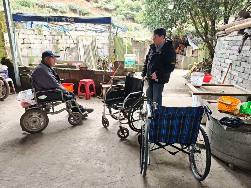 在3月份残疾人例行走访中,工作人员发现一位残疾人的轮椅因使用频繁,已严重损坏,影响日常出行,更存在安全隐患。工作人员当即记录情况,迅速启动帮扶程序。乡村两级残联急事急办,积极与上级残联沟通协调,成功为该对象免费申领到一台新轮椅。