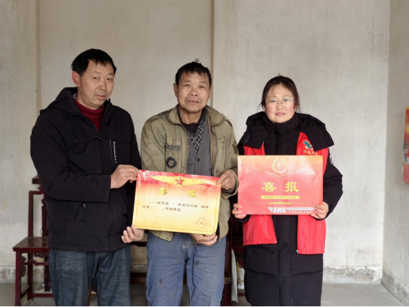 送喜报,送的不仅是荣誉,更是党和政府的关怀与温度。在家中,镇、村工作人员与军属促膝长谈,细致询问家庭生活、身体健康状况,由衷感谢他们为国防建设输送了优秀人才。交谈中,家属偶然提及房屋屋顶偶有渗漏的琐事。随行的大阜村两委干部当即表示将密切关注,协助制定经济合理的修缮方案,帮助解决实际困难,确保军属生活安心、舒心。从送上一纸喜报到关切一砖一瓦,这一细节生动体现了基层服务从“仪式化”向“实质化”的深化,让尊崇优待真正看得见、摸得着。