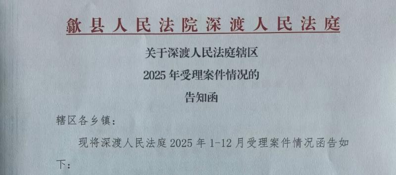 2025年最后一天,歙县人民法院深渡人民法庭精心制作纠纷成讼告知函,发给辖区8个乡镇,以一份特殊的礼物,为2025年画句号,为2026年谋新篇。